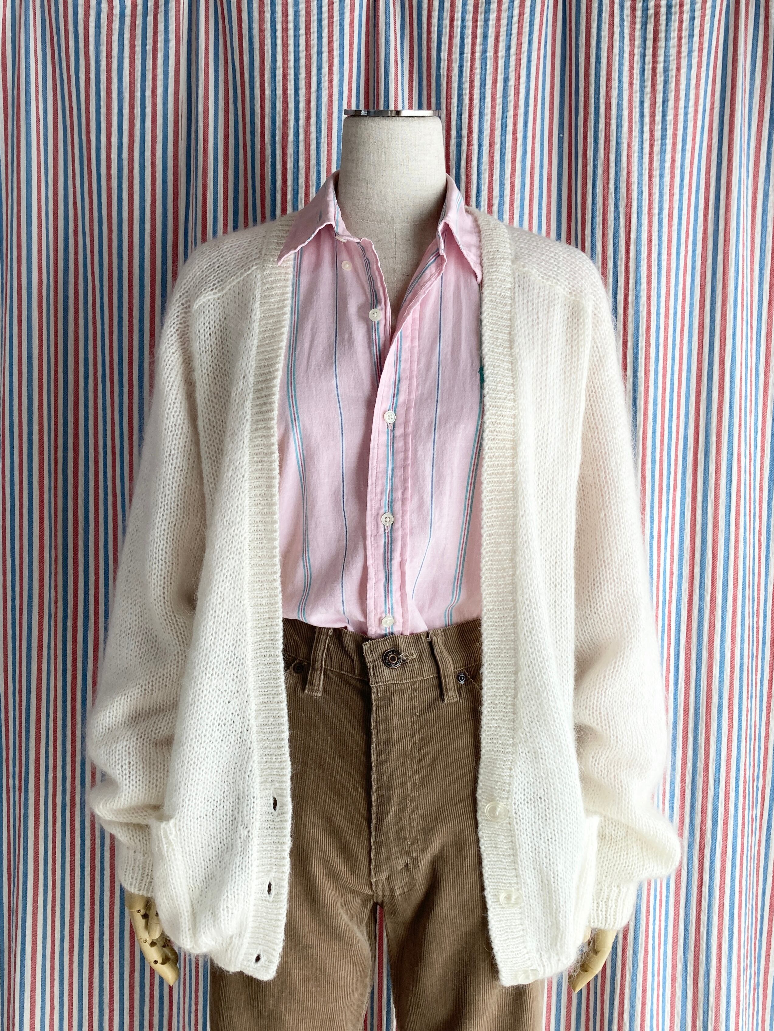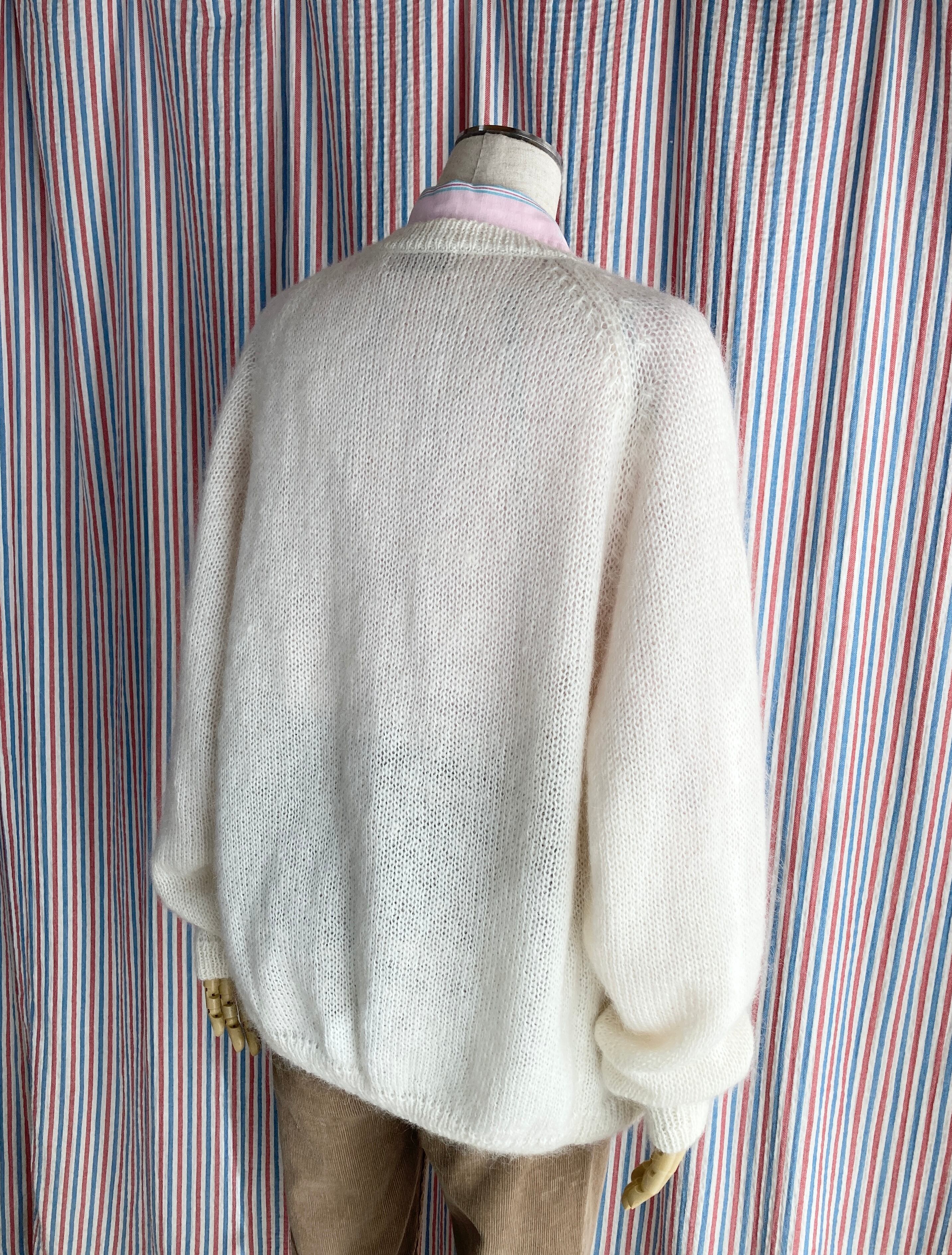 こちらは1980年代〜1990年代のニットカーディガンです。生地はモヘアとアクリルの混合です。