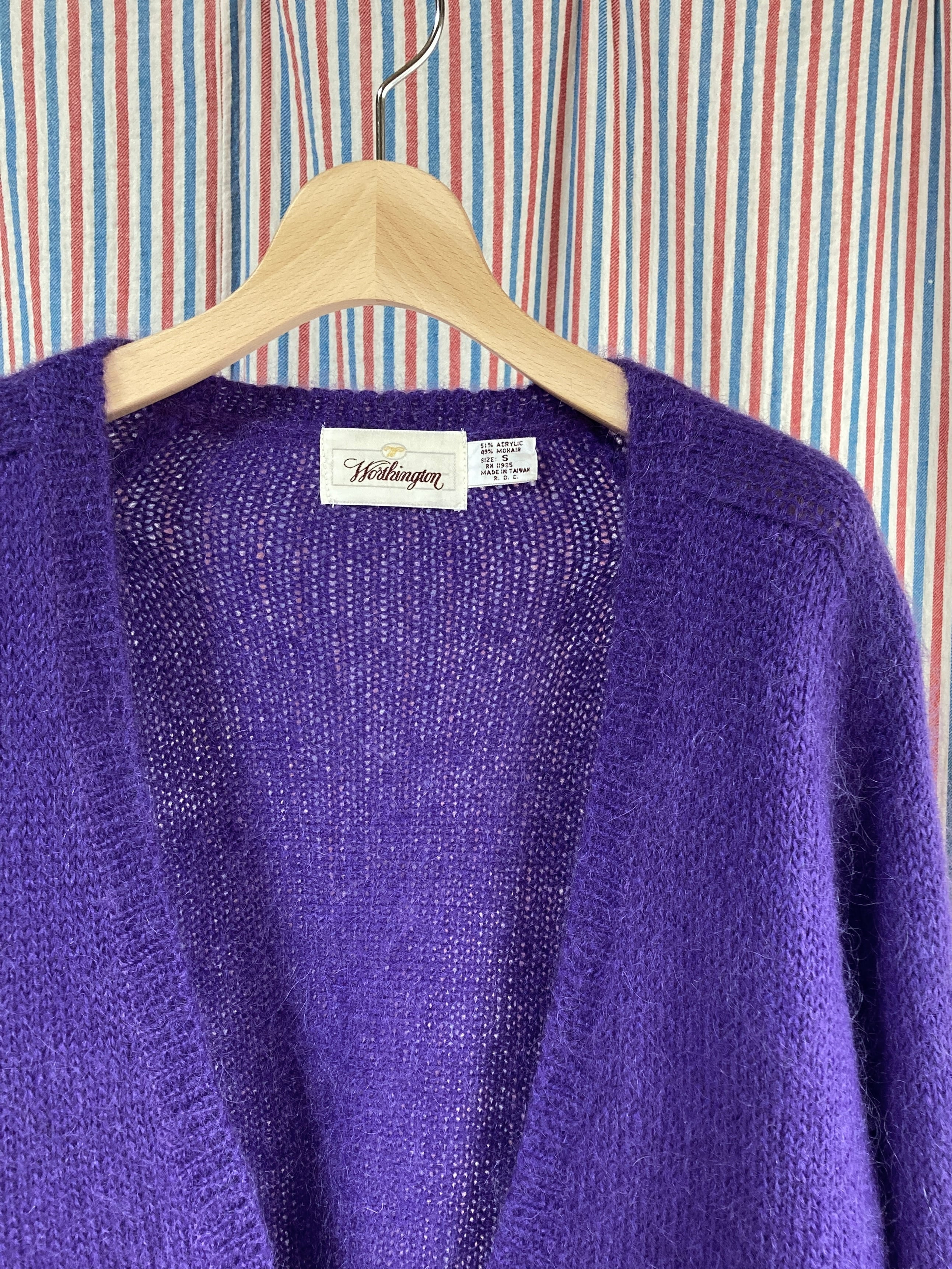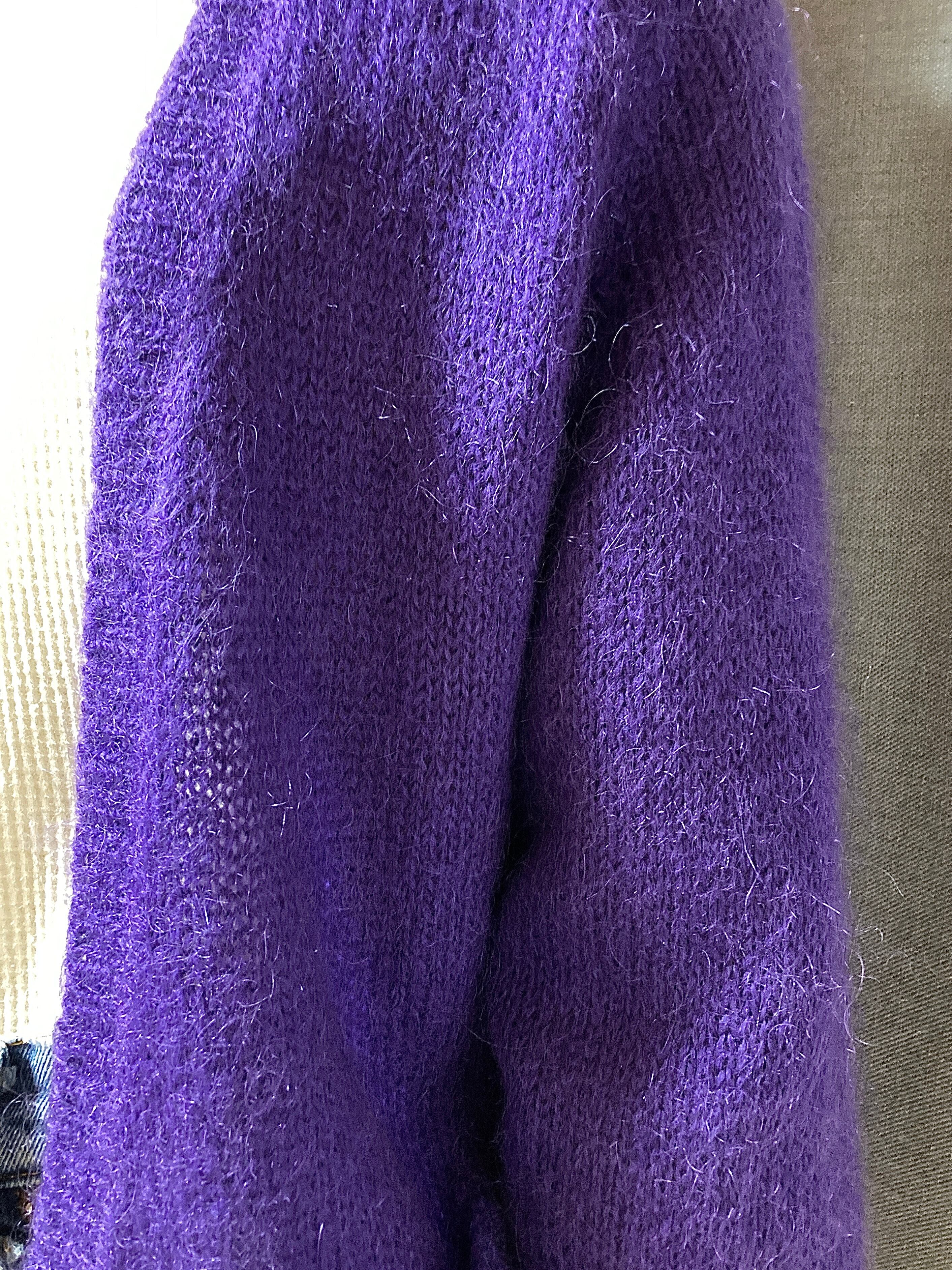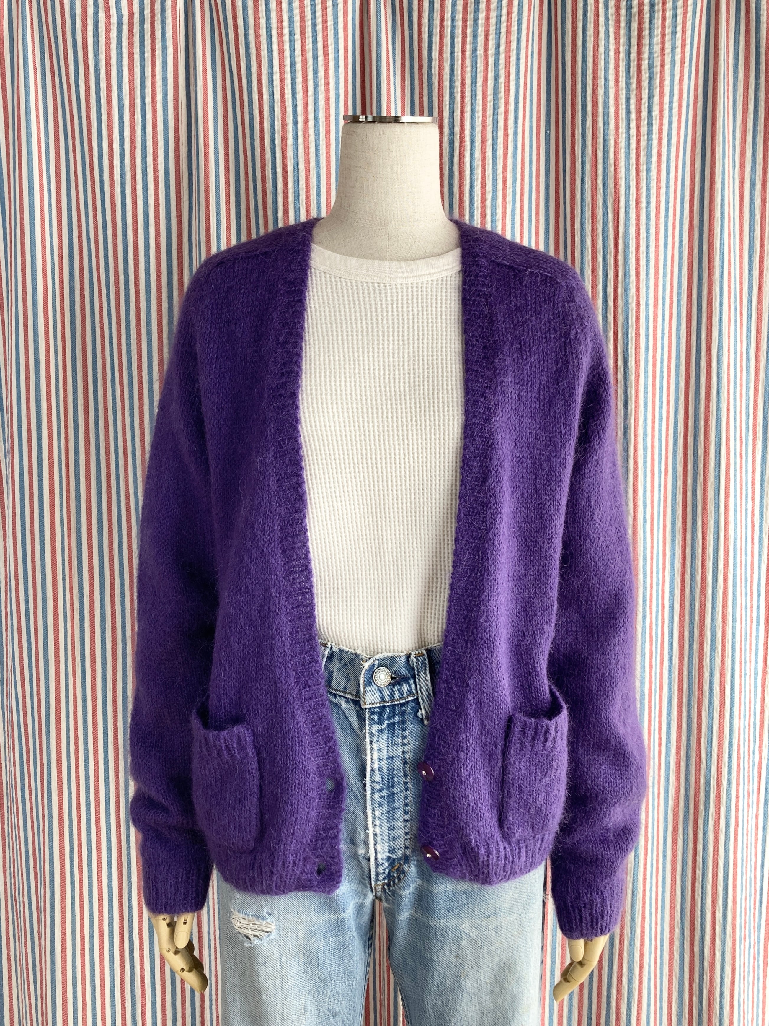 こちらは1980年代〜1990年代のニットカーディガンです。生地はモヘアとアクリルの混合です。