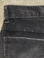 ⚫︎バックポケット上の切り替えの縫い目に、コーデュロイのウネの凸部分が欠けて白っぽく見える部分が左右で6箇所ございます。縫製時の傷と思われます(画像14・15)