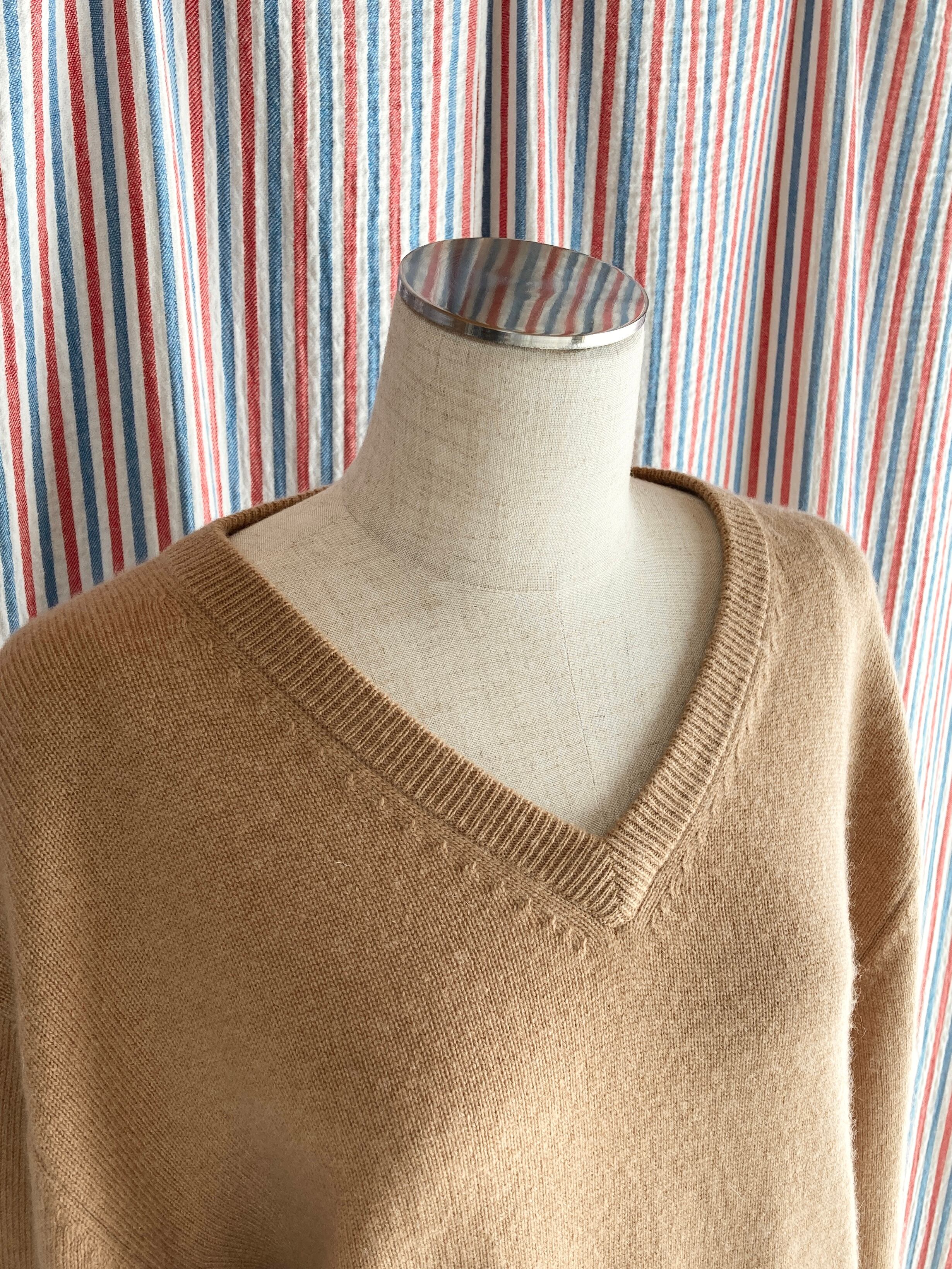 こちらは1990年代のカシミヤVネックニットセーターです。カラーは濃いベージュです。