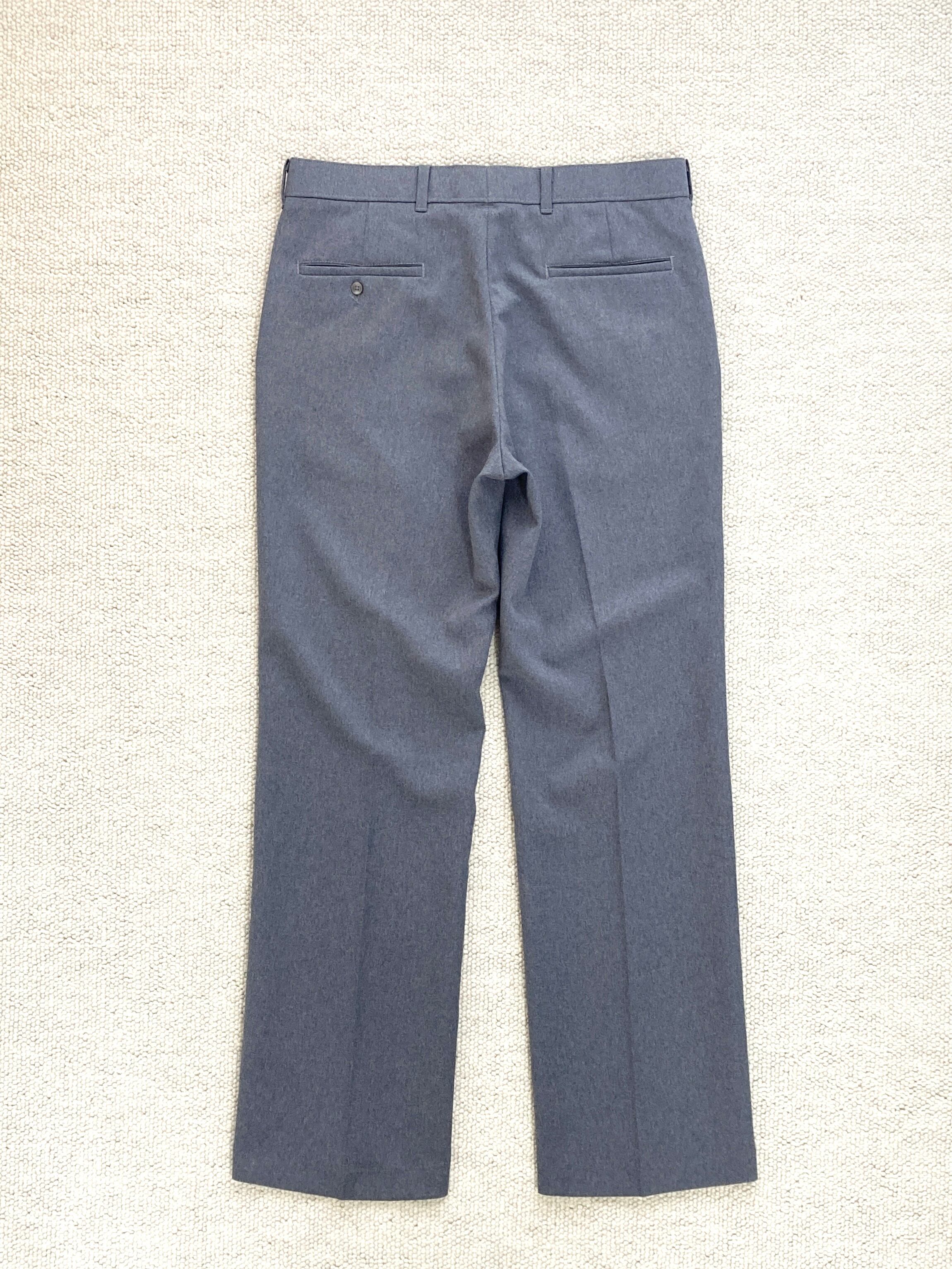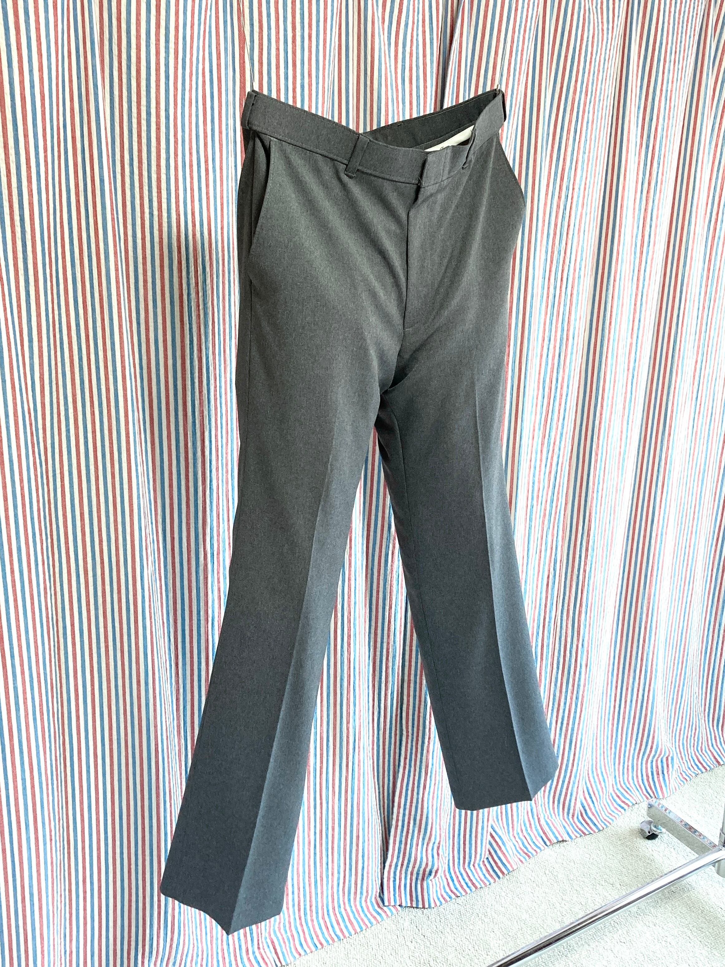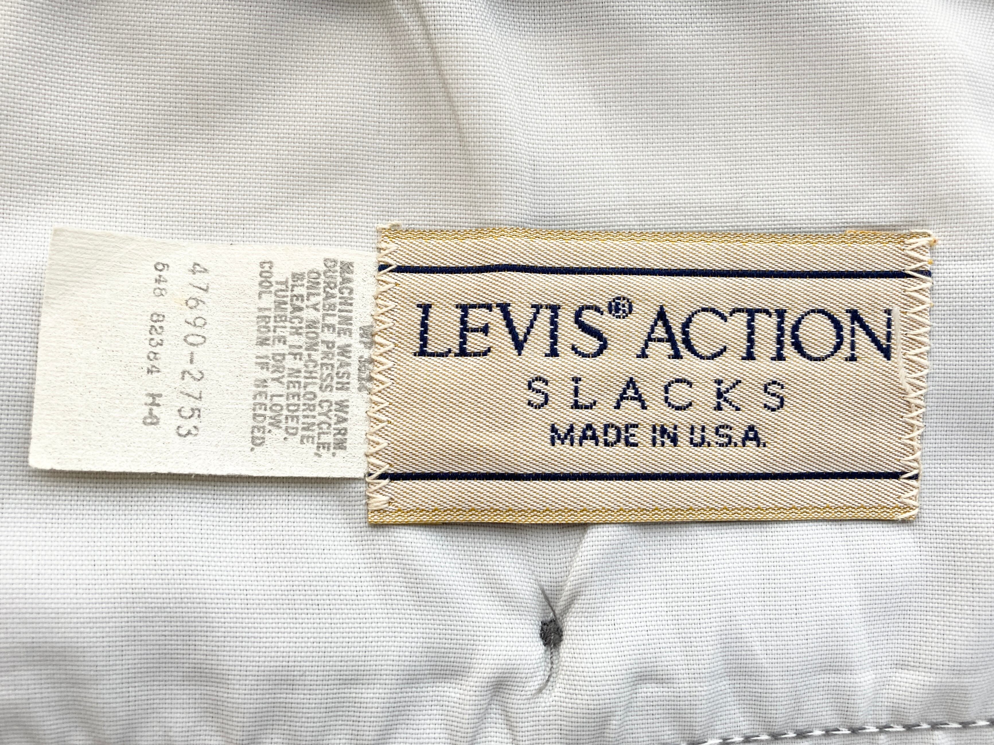 こちらは1980年代〜1990年代のLevi'sアクションスラックスです。カラーは細かく霜降りがかったグレー、裏側のタグに生地やサイズが表記されていませんが、生地は恐らくポリエステルと思われます。前開きのジッパーはTALONです。