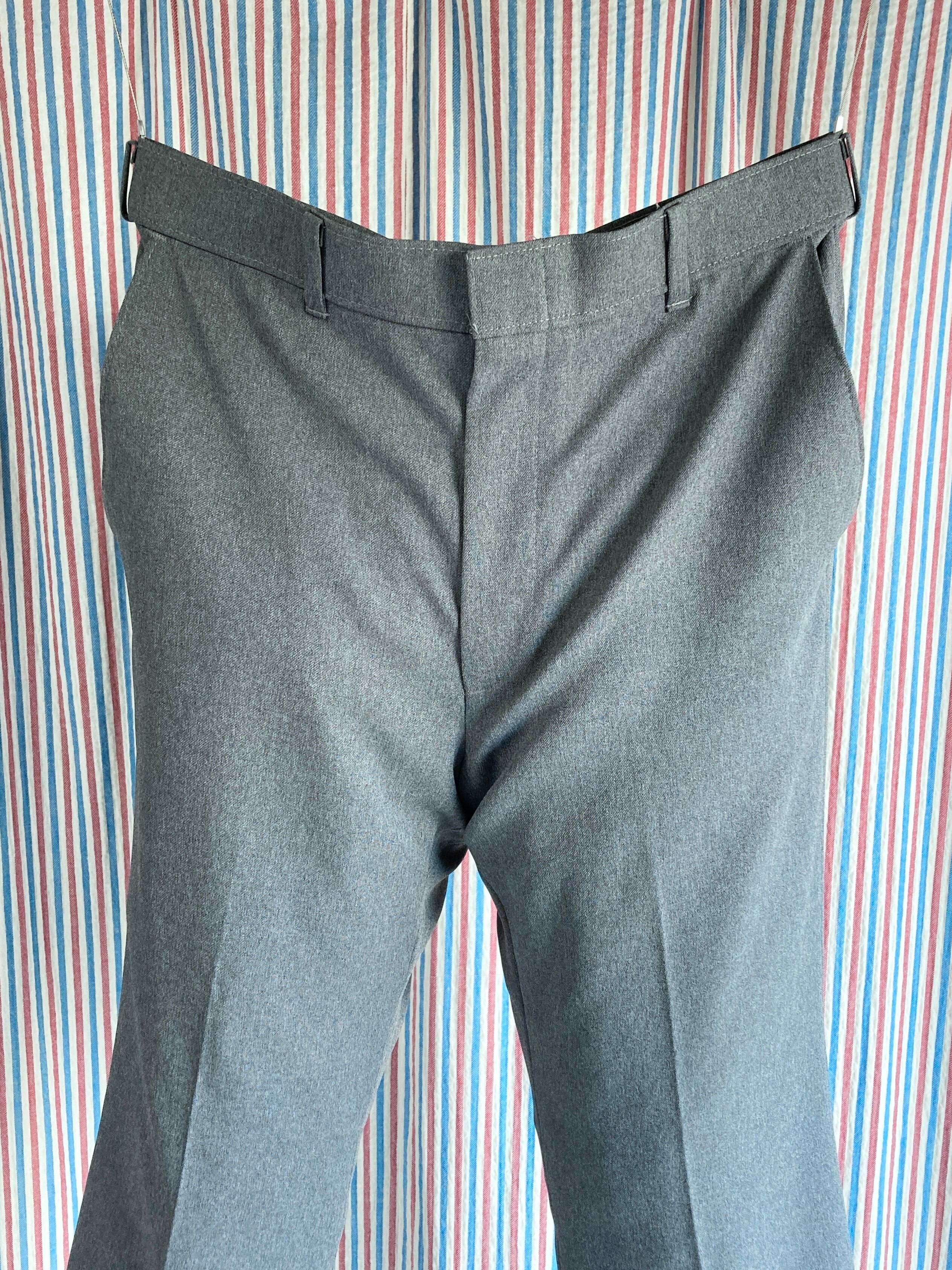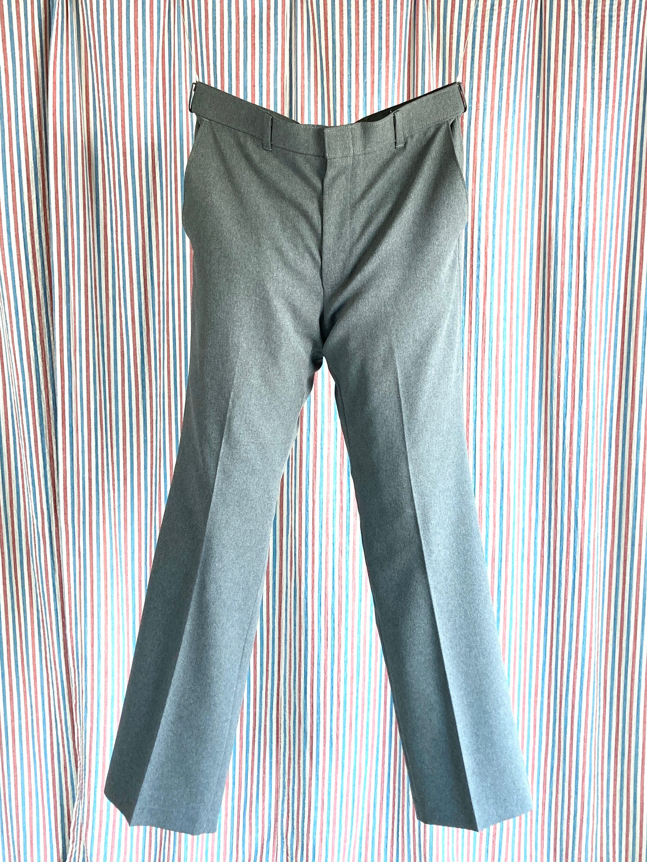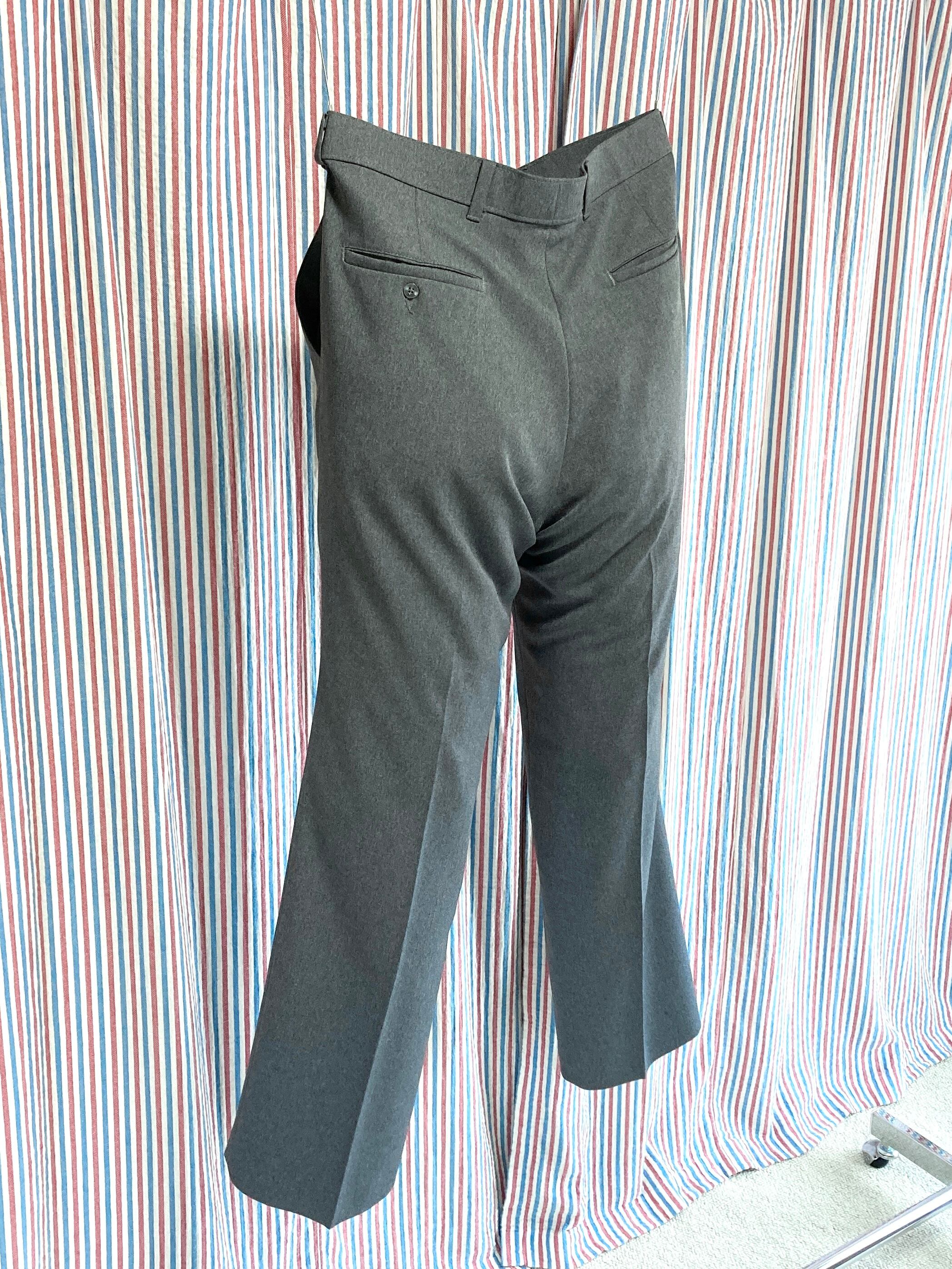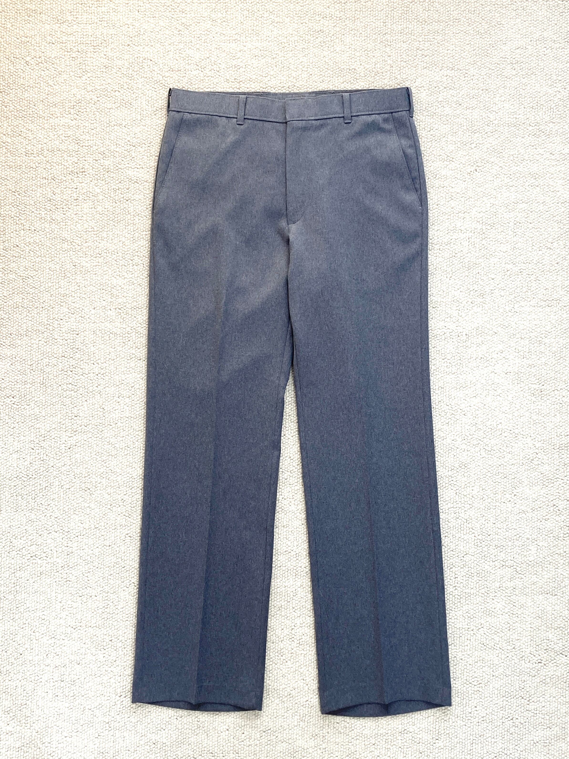 こちらは1980年代〜1990年代のLevi'sアクションスラックスです。カラーは細かく霜降りがかったグレー、裏側のタグに生地やサイズが表記されていませんが、生地は恐らくポリエステルと思われます。前開きのジッパーはTALONです。