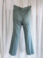 この生地は地味ですが他にスラックスがたくさんある中でも不思議と目を惹きます…わかりやすいのはバックポケットの玉縁(パイピング部分)です、生地に特有の張りがあるので玉縁がプリッとしています(笑)ここに気付きもしや!と裏側を覗いてアクションスラックスのタグがあった時はいつも嬉しいです。